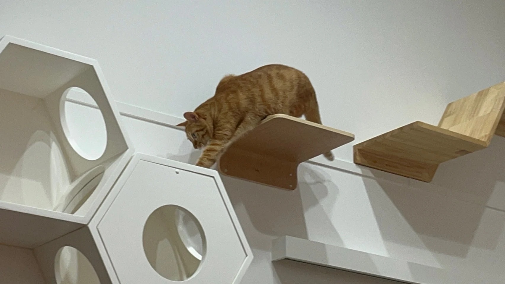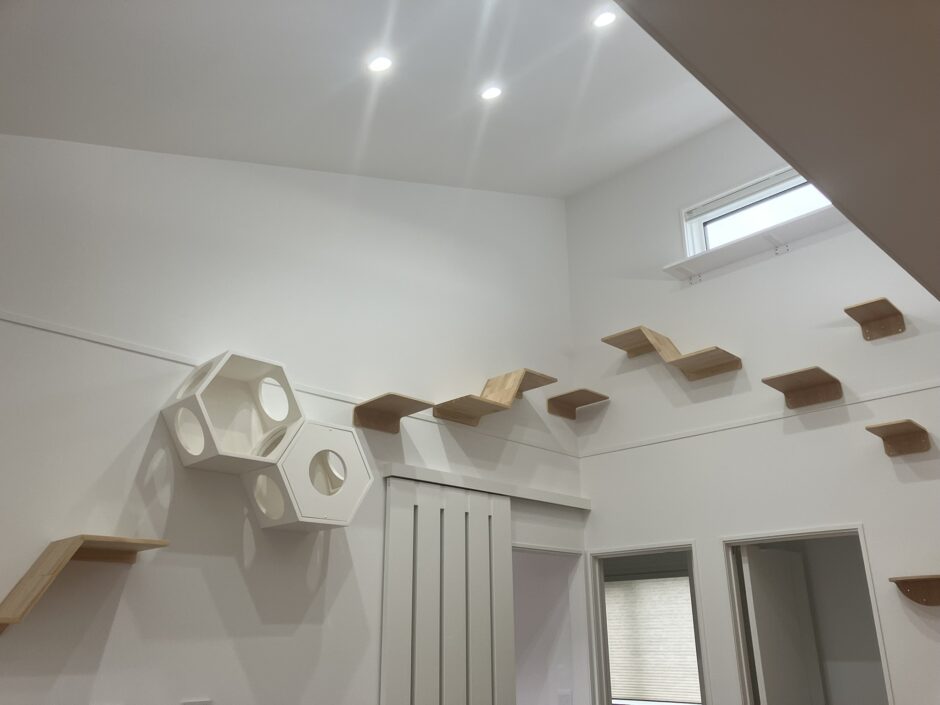 MYZOOさんのデザイン性のあるキャットステップとゆとぴぃのオリジナル商品を組み合わせて回遊性のある空間になりました!