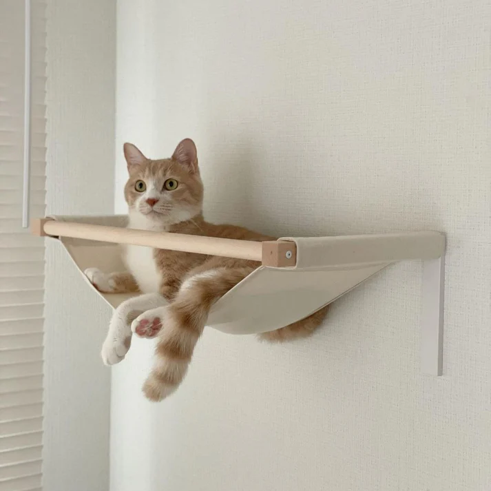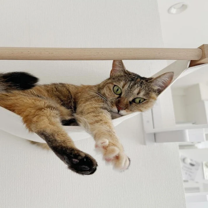 石膏ボードの壁に取り付け可能なキャットハンモック。下地が不要でお手軽に壁に取り付けできます♬